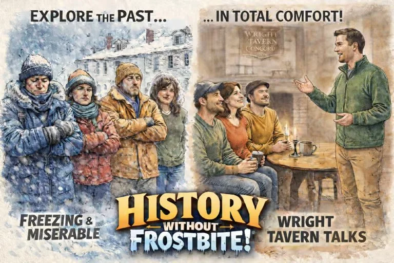 Skip the icy sidewalks and step inside one of Concord's most storied spaces for a warm, lively, and thought-provoking 90-minute history talk at the historic Wright Tavern. These mid-day programs pair big ideas with cozy surroundings—and just enough time to learn something meaningful before lunch (or with lunch, if you're smart).